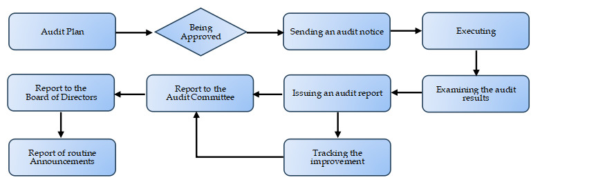 The audit work is mainly carried out based on the audit plan approved by the board of directors, and project audits are also carried out as necessary. Improvement suggestions are proposed based on possible deficiencies in the internal control system and audit reports are issued. The audit supervisor not only reports the audit business to the audit committee on a regular basis, but also reports to the board of directors to implement the spirit of corporate governance.
